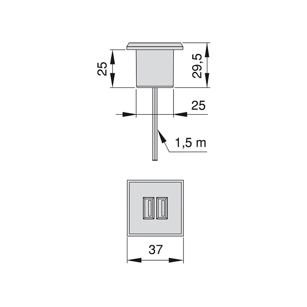 Connettore Quadrato A Incasso 2 Prese Usb 37 mm Plastica Grigio Metallizzato Emuca