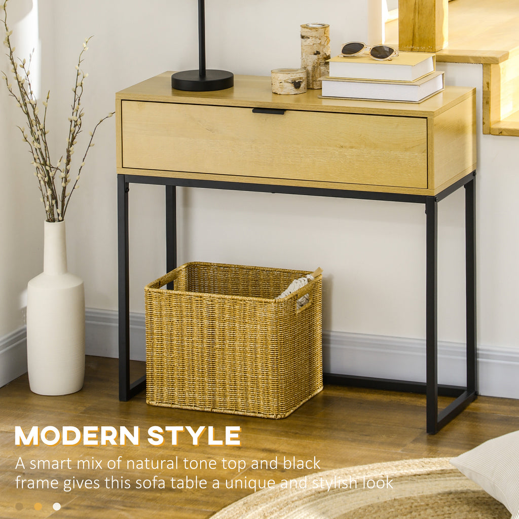 Consolle 1 Cassetto 80x30x76 cm in Legno e Acciaio Legno e Nero