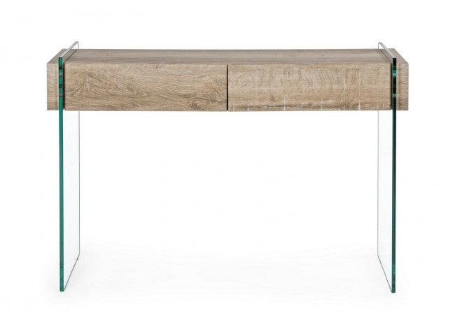 Consolle 2 Cassetti Line Kenya Rettangolare 110x40 in MDF e Vetro