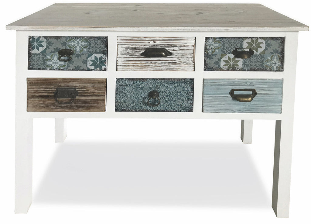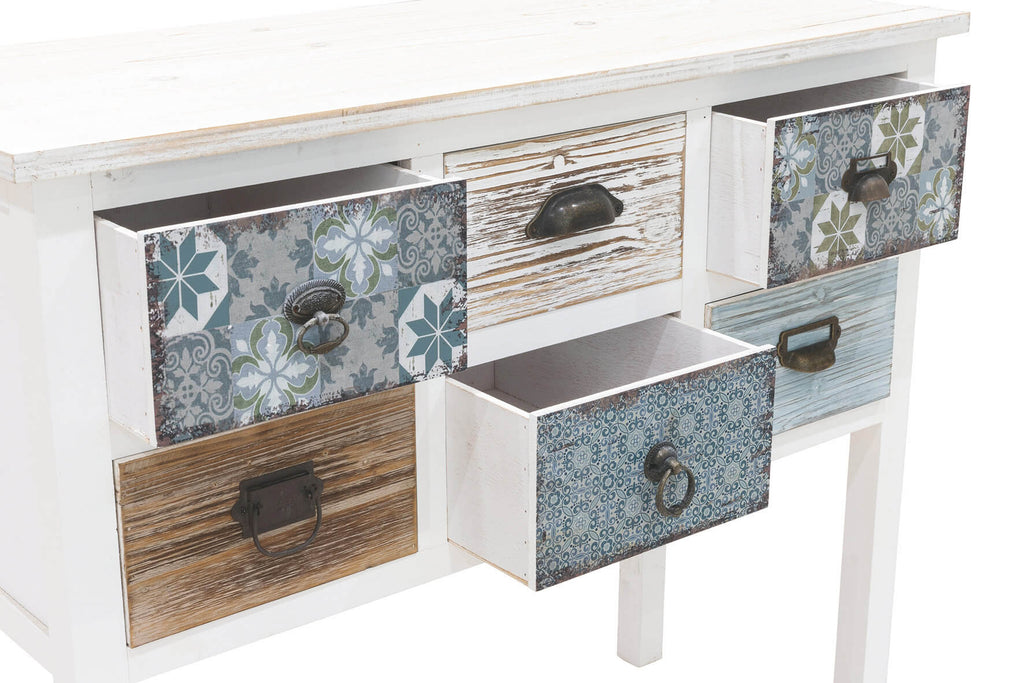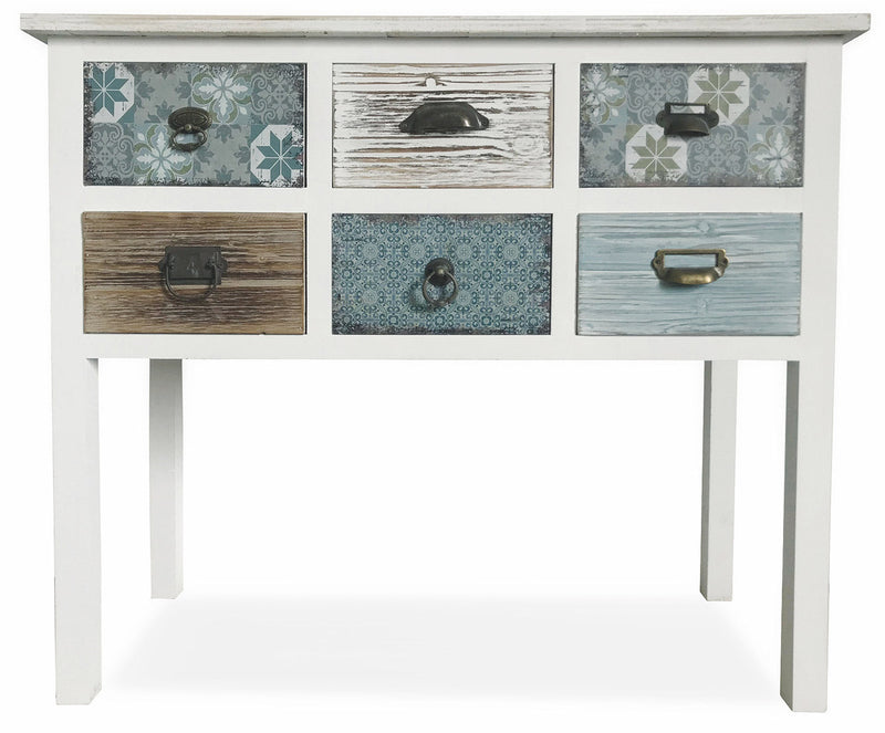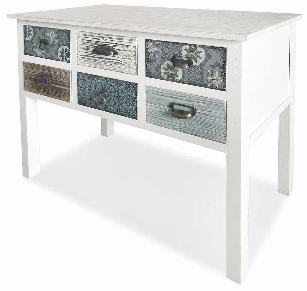 Consolle 6 Cassetti 90x38x78,5 cm in Legno Soriani Bianco Anticato