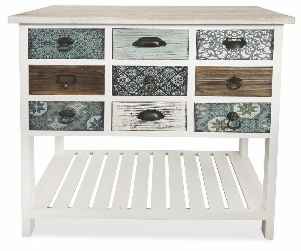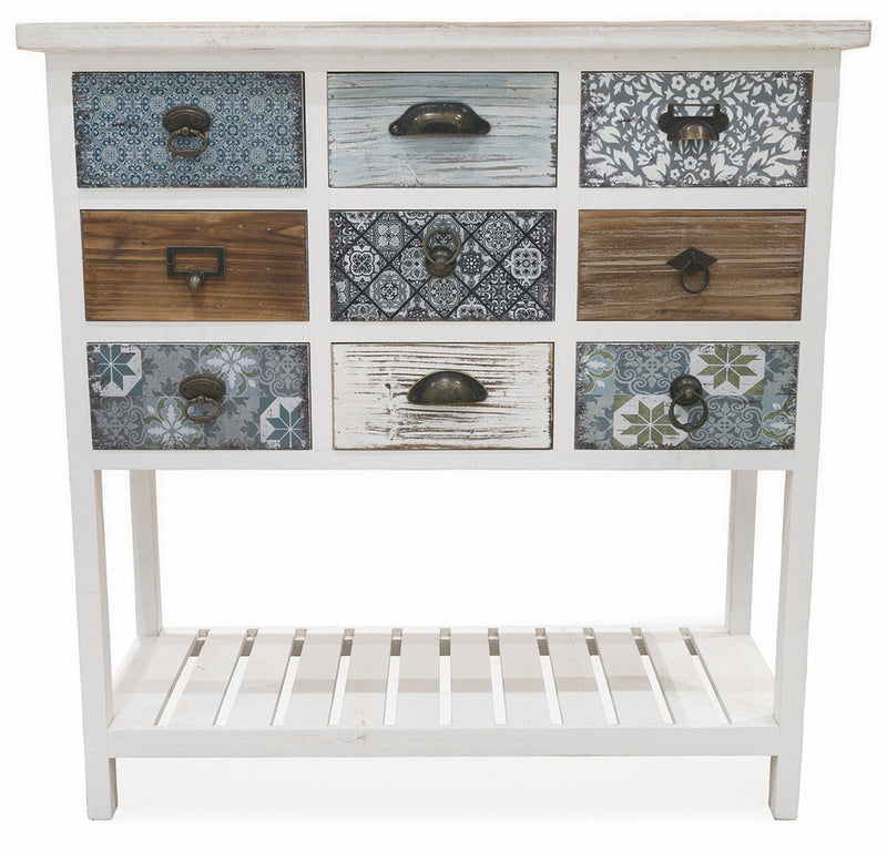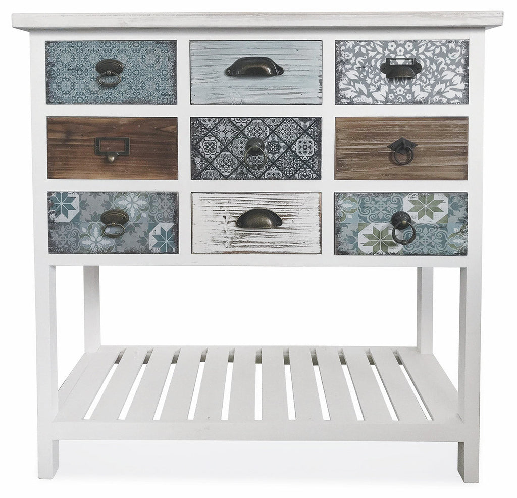 Caratteristiche Tecniche Consolle 9 Cassetti con Portaceste 80x32,5x82 cm in Legno Soriani Bianco Anticato