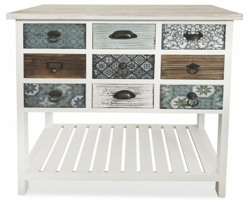 Consolle 9 Cassetti con Portaceste 80x32,5x82 cm in Legno Soriani Bianco Anticato