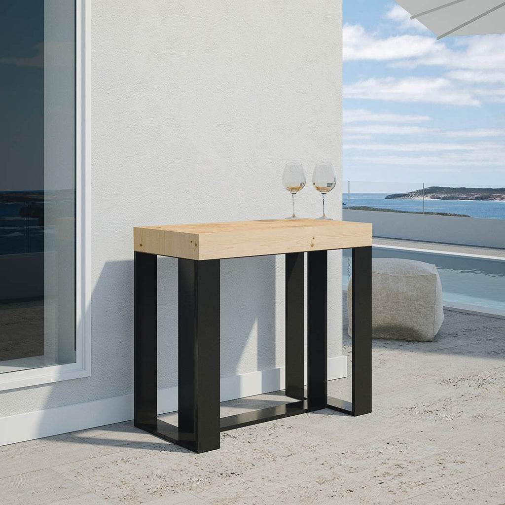 Consolle Futura in legno di listellare di Abete riempie gli spazi nel rispetto dello stile e del gusto. Un elemento d’arredo capace di arredare la casa senza interrompere l’armonia del resto del mobilio. Ideale per l’ingresso, la Consolle riempie lo spazio di un'entrata e manifesta la sua bellezza se posta sotto uno specchio. Un punto di appoggio comodo per lasciare chiavi o altri oggetti quando si entra in casa. Perfetta anche per arredare le altre stanze della casa: camera da letto, cucina, salotto o studio. Non mancano la robustezza e il design, un insieme di qualità che si fondono nella praticità di un mobile che non ha solo la caratteristica di essere bello.La versatilità della Consolle Futura regala la comodità di trasformare un mobile discreto in un pratico e stabile tavolo da pranzo. Poche e semplici mosse e avrete a disposizione un grande e spazioso tavolo capace di ospitare i vostri amici.Consolle Futura abiterà la vostra casa portando un tocco di raffinatezza e custodendo in sé il valore di un tavolo allungabile.Non neccessita di gamba centrale in quanto il telaio orizzontale, funge da sostegno.Il telaio in ferro con il piano a Folding, rende la Consolle molto robusta e stabile. 100% made in Italy.