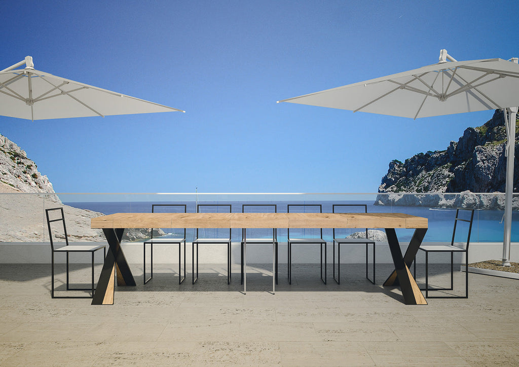 Consolle da esterno Lilla Premium, con piano e allunghe a Folding, risponde al gusto ricercato di chi ama attorniarsi di un mobilio unico ed emozionante. Per avere a disposizione un mobile per esterno di design, che sappia distinguersi ma sempre rispettando le esigenze, la scelta è la Consolle Lilla Premium. La versatilità della Consolle Lilla Premium è una qualità indiscutibile, con praticità e poche mosse si trasforma in un comodo e spazioso tavolo da pranzo, adatta sia per l'interno sia per l'esterno come bordo piscina, giardino e terrazzi. La stabilità è garantita dalla struttura con la quale è realizzata e dal meccanismo di allunghe che permette di creare un tavolo della dimensione che vi è più necessaria senza difficoltà. Un mobile di pregio a un prezzo imbattibile. Made in Italy.