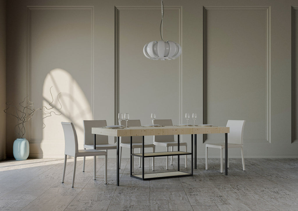 Consolle Allungabile Plano Premium con allunghe a Folding in listellare di Abete è una nuova Consolle studiata per essere estremamente stabile, robusta ed elegante. La base in metallo, verniciata ed è la struttura portante di questa Consolle. Usata come tavolo da pranzo, per la sua eccezionale stabilità può essere usato tranquillamente anche come tavolo da lavoro.La Consolle Plano, grazie alla possibilità di scegliere i modelli di allunghe, può in un attimo trasformarsi in un piano di 3 metri nelle occasioni più importanti.L'ampio e solido telaio in metallo lavorato a laser ad alta precisione, costituisce la struttura portante della Consolle stessa.Realizzata interamente in Italia mediante l'utilizzo di materiali 100% italiani. Il piano e le allunghe, sono in Abete. Composta essenzialmente da due parti: la struttura portante in metallo verniciato con due ampi ripiani sottostanti da poter utilizzare come punti di appoggio.