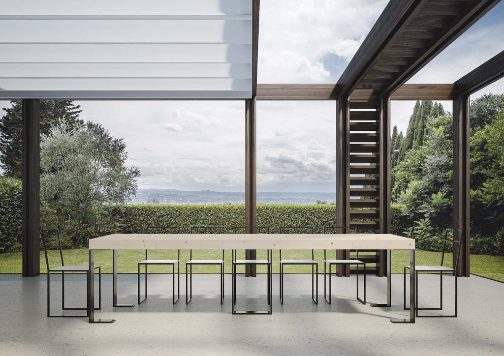 Consolle Sintesi Premium con allunghe a Folding in legno di Abete per arredare con gusto e stile la vostra casa. Pensate al vostro ingresso ancora sgombro, con Consolle Sintesi potrete creare un ambiente ospitale e pratico. Un punto di appoggio sul quale collocare chiavi, apri cancello o altri oggetti che si possiedono quando si entra in casa.Grazie alla sua linea è possibile collocarla anche in altre zone della casa come la cucina, la camera da letto, il salotto o lo studio. Consolle Sintesi renderà più facile e comoda la vostra vita casalinga.Non solo Consolle, con pochi e semplici gesti avrete a vostra disposizione un bellissimo e comodissimo tavolo da pranzo che arriverà ad ospitare fino a 14 persone. Il sistema di allunghe permetterà di aprire la Consolle fino alla misura di cui avete bisogno e sarà stabile, robusta e resistente.La Consolle Sintesi presenta una robusta scocca in ferro lavorata con taglio laser e piano lavorato a Folding in legno in listellare di Abete.
