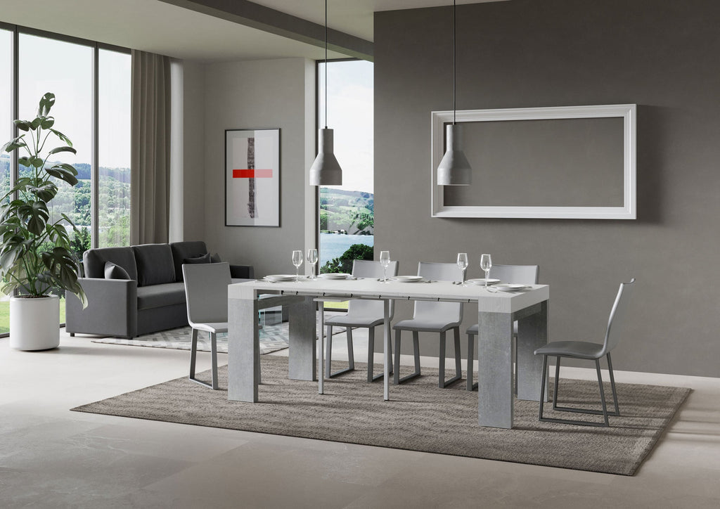 Consolle Allungabile 90-300x40x77 cm in Nobilitato Bianco e Grigio