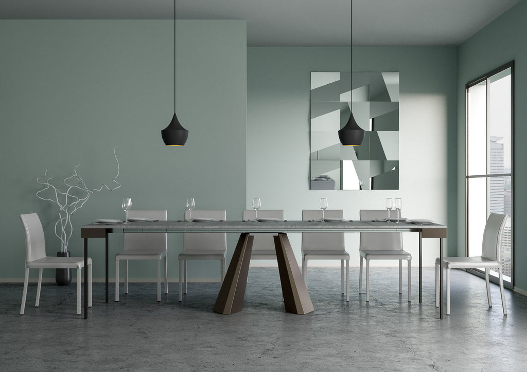 Consolle Allungabile Diamante Evolution.Una Consolle estremamente stabile, robusta, elegante e dal design originale. La Consolle ha un bordo perimetRale in ferro verniciato che dona al tavolo una sensazione di robustezza unica nel suo genere. Dalle linee pulite e di grande impatto, i due materiali impiegati si fondono in un'armoniosa combinazione.L'ampio e solido telaio in metallo, costituisce la struttura portante della Consolle stessa.Realizzata interamente in Italia mediante l'utilizzo di materiali 100% italiani.