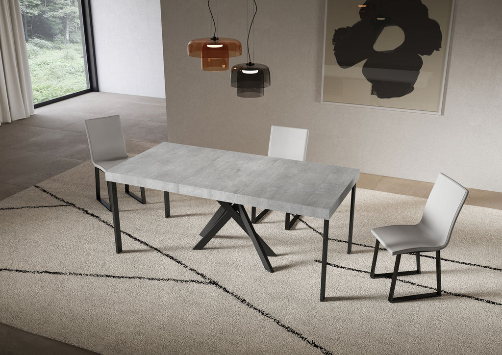 Consolle Allungabile 90-300x40x77 cm Saki Premium Cemento Gambe Antracite