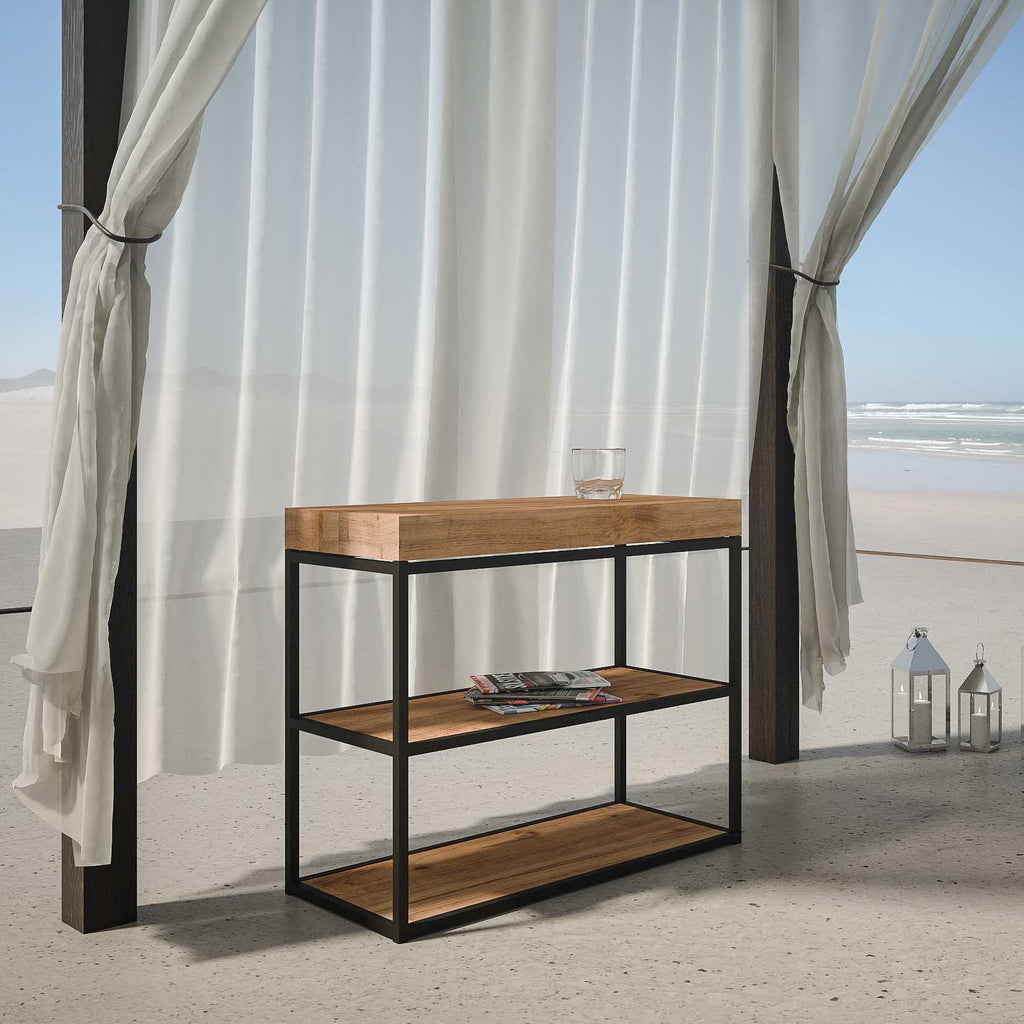 Consolle Allungabile da Esterno in Legno e Ferro H77x40x90/300cm Camelia Abete Tinto Classica