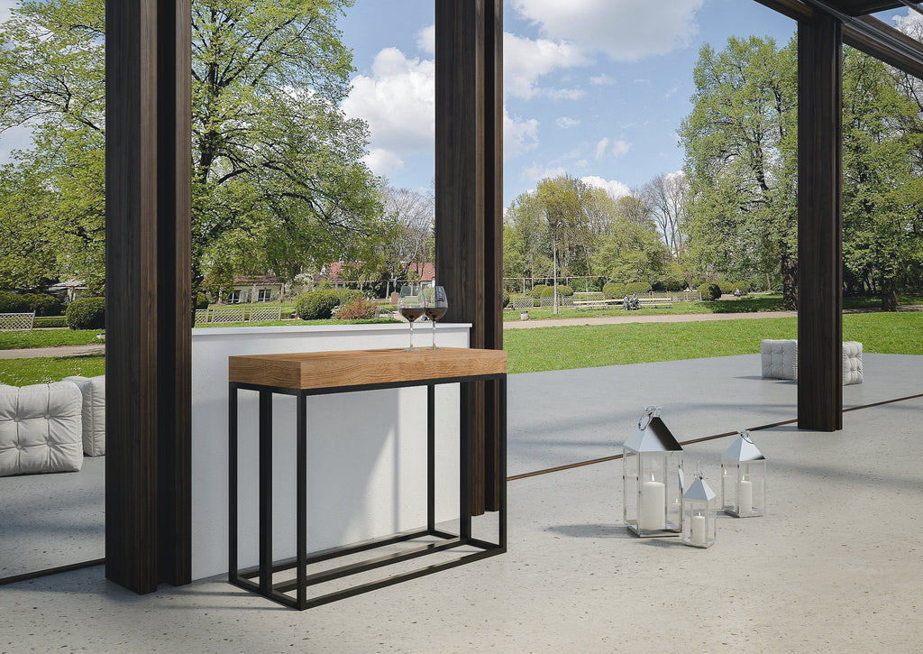 La versatilità della Consolle Allungabile Lilla è una qualità indiscutibile, con praticità e poche mosse si trasforma in un comodo e spazioso tavolo da pranzo, adatta per l'interno e l'esterno giardino, terrazzi, bordo piscina.