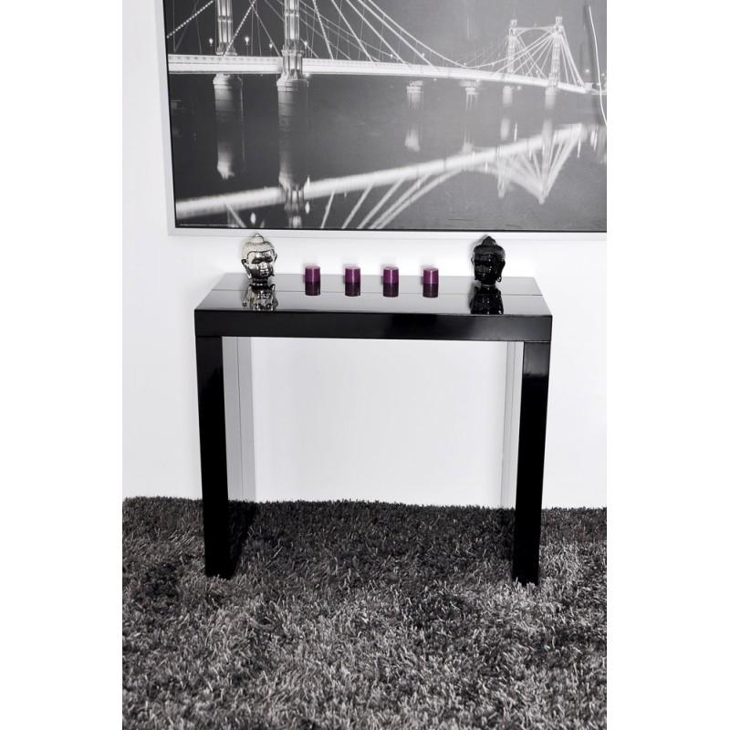 Tavolo in legno con binari di estensione in acciaio. Questa consolle è comoda e versatile , è allungabile fino a 3 metri tramite un meccanismo di telescopico per permettervi così di ospitare fino a 14 persone. Dotata di un solido sostegno centrale che garantisce la massima stabilità. Il nostro tavolo consolle è un fantastico tavolo da pranzo estensibile in 5 posizioni diverse, che vi permetterà di passare dai 45 cm ai 300 cm di lunghezza. Grazie alla possibilità di allungarlo, è possibile utilizzarlo in diversi modi: ad esempio come tavolo da ingresso, come tavolo da cucina o come scrivania e nei momenti in cui tutta la famiglia è riunita in casa potrete allungarlo al massimo ed utilizzarlo come tavolo da pranzo con 14 comodi posti a sedere. Finitura nero lucido