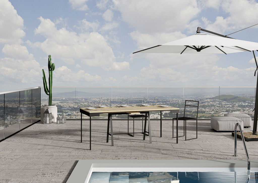 Consolle Allungabile in Legno e Ferro H77x40x90/300 cm Banco Evolution Abete Natura telaio Antracite con Allunghe Classiche