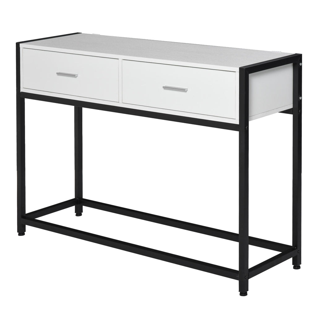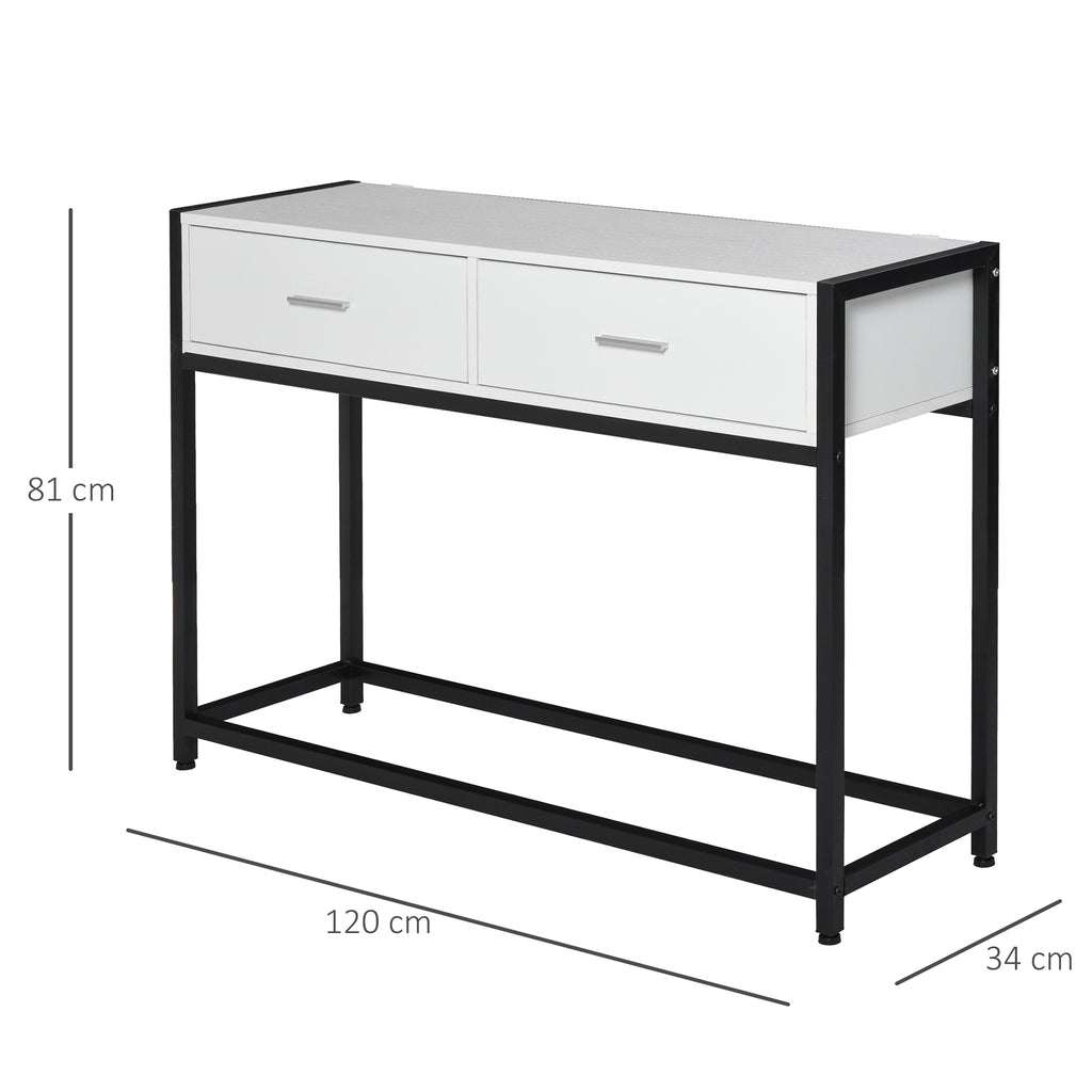 Arreda il tuo ingresso con questo tavolo consolle . Moderno e chic, è perfetto per tenere in ordine il tuo ambiente, ma senza rinunciare allo stile e alla qualità. Ha due comodi cassetti e un ampio piano d'appoggio per sistemare i tuoi accessori, e una base in metallo per la massima stabilità.