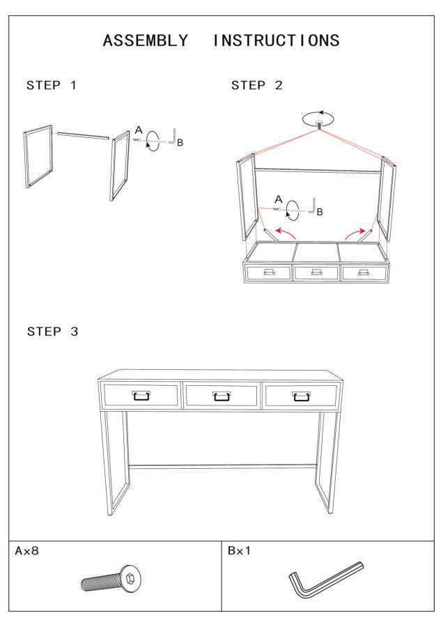 Consolle Fissa 3 Cassetti 120x35x78 cm in Metallo e Legno