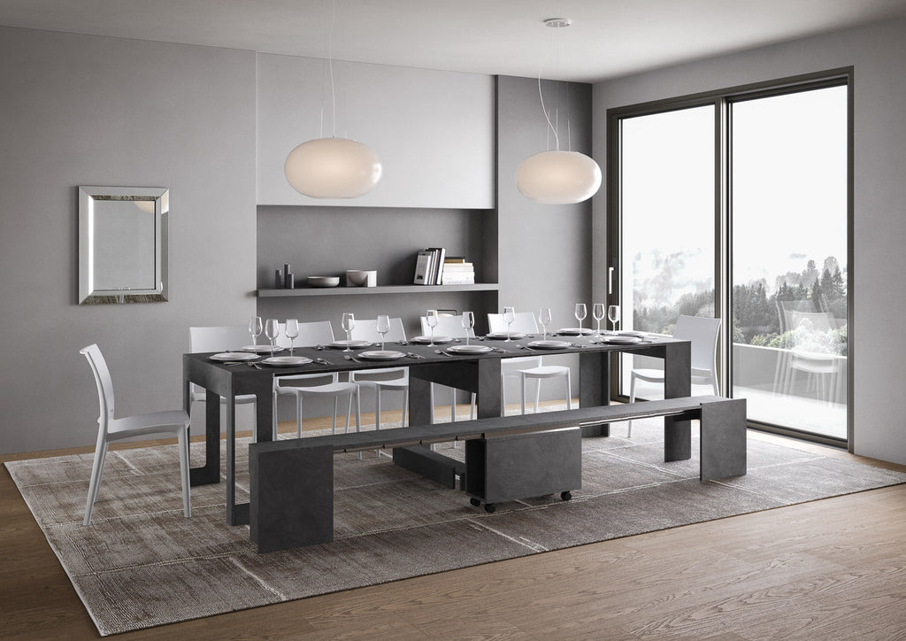 Consolle Tavolo Allungabile 90-302x42x75 cm Evolve Antracite Spatolato con Panca Inferiore