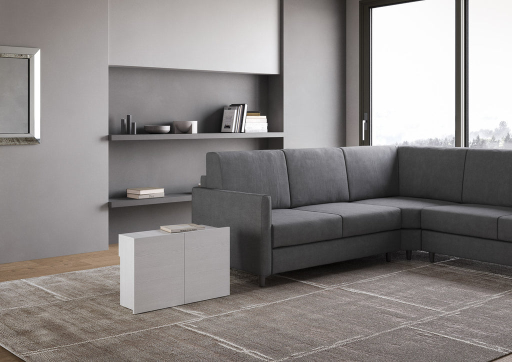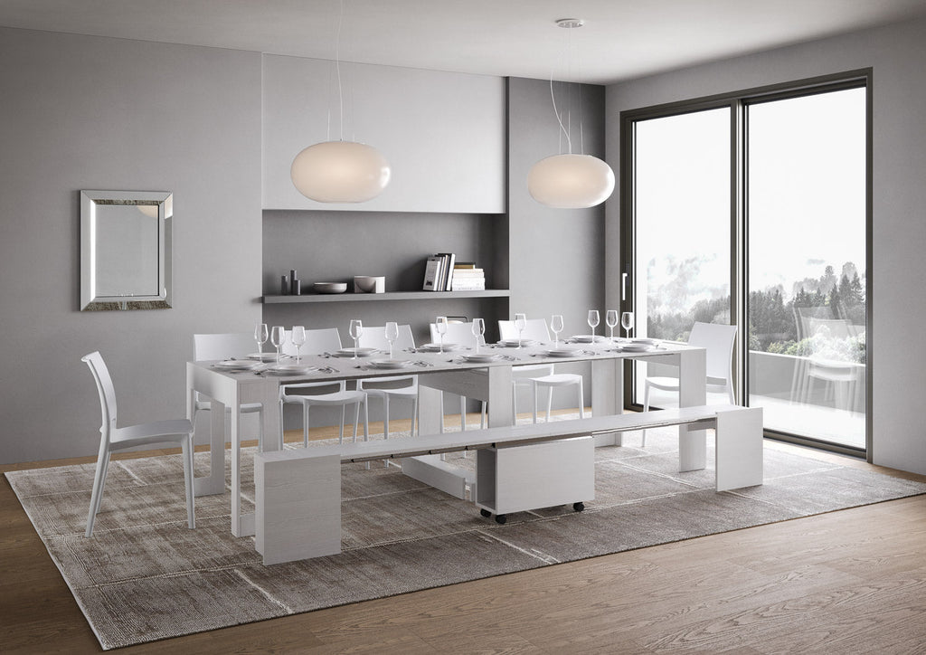 Consolle Tavolo Allungabile 90-302x42x75 cm Evolve Bianco Frassino con Panca Inferiore