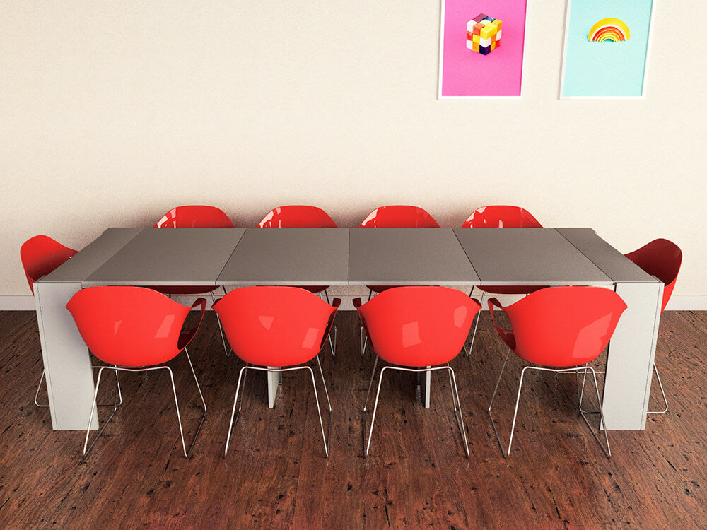 Consolle Tavolo Allungabile In Melamina per chi cerca un appoggio per gli spazi più piccoli o che all'occorrenza un tavolo che sia in grado di ospitare molti ospiti, sarà utilissimo dato che si allunga fino 300cm e tutti avranno un posto a tavola assicurato visto che è uno dei più lunghi della categoria, si allunga unendo fino ad un massimo di 4 allunghe da 65cm l'una che vengono riposte nelle gambe quando la consolle è chiusa. La Consolle Allungabile di TFT non solo è un complemento d'arredo utilissimo ma sarà un tocco di stile alla vostra casa. Dotata di una solida struttura in legno e in melamina sarà indispensabile per la vostra casa. Arredate i vostri spazi con la qualità del Made In Italy a marchio TFT Serie MoonCaratteristiche: