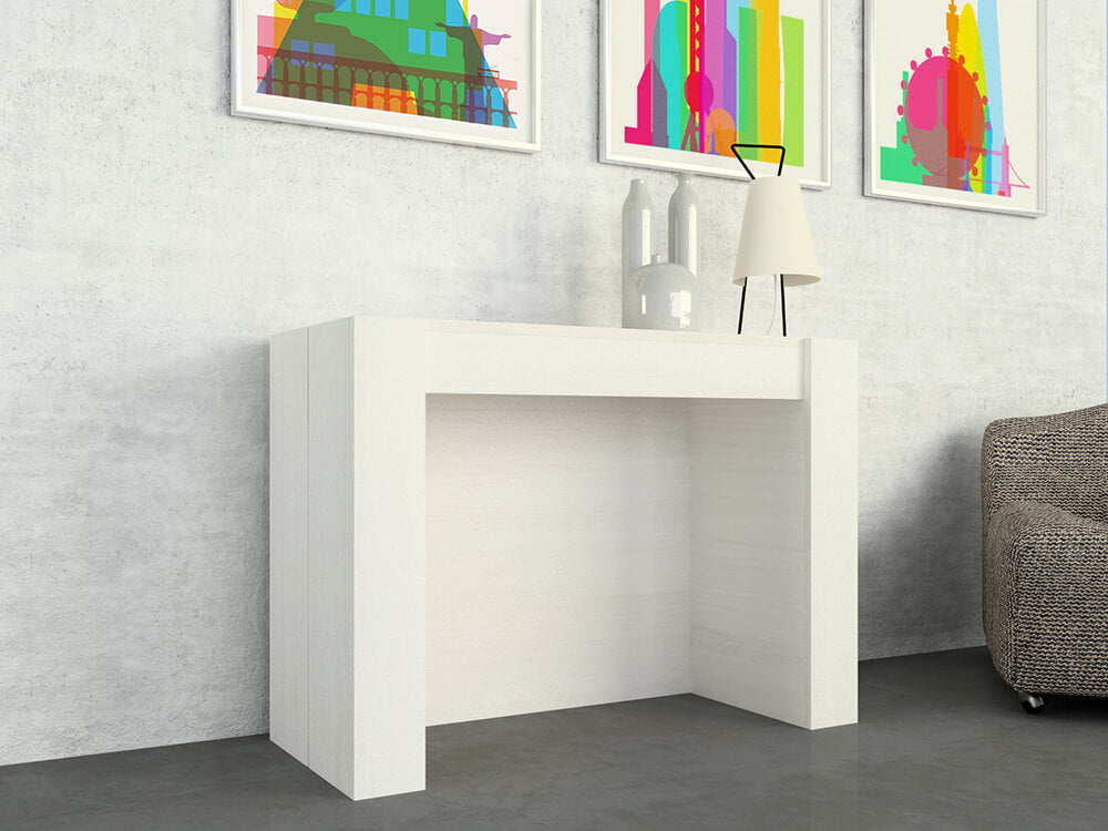 Consolle Tavolo Allungabile In Melamina 42/302x95x76cm TFT Moon Bianco Cenere
