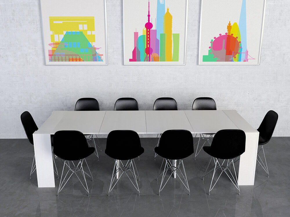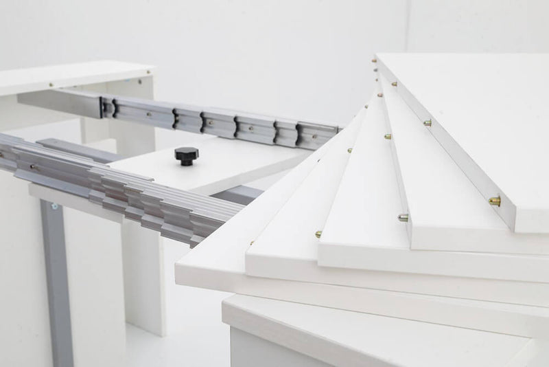 Consolle Tavolo Allungabile In Melamina per chi cerca un appoggio per gli spazi più piccoli o che all'occorrenza un tavolo che sia in grado di ospitare molti ospiti, sarà utilissimo dato che si allunga fino 300cm e tutti avranno un posto a tavola assicurato visto che è uno dei più lunghi della categoria, si allunga unendo fino ad un massimo di 4 allunghe da 65cm l'una che vengono riposte nelle gambe quando la consolle è chiusa. La Consolle Allungabile di TFT non solo è un complemento d'arredo utilissimo ma sarà un tocco di stile alla vostra casa. Dotata di una solida struttura in legno e in melamina sarà indispensabile per la vostra casa. Arredate i vostri spazi con la qualità del Made In Italy a marchio TFT Serie MoonCaratteristiche:
