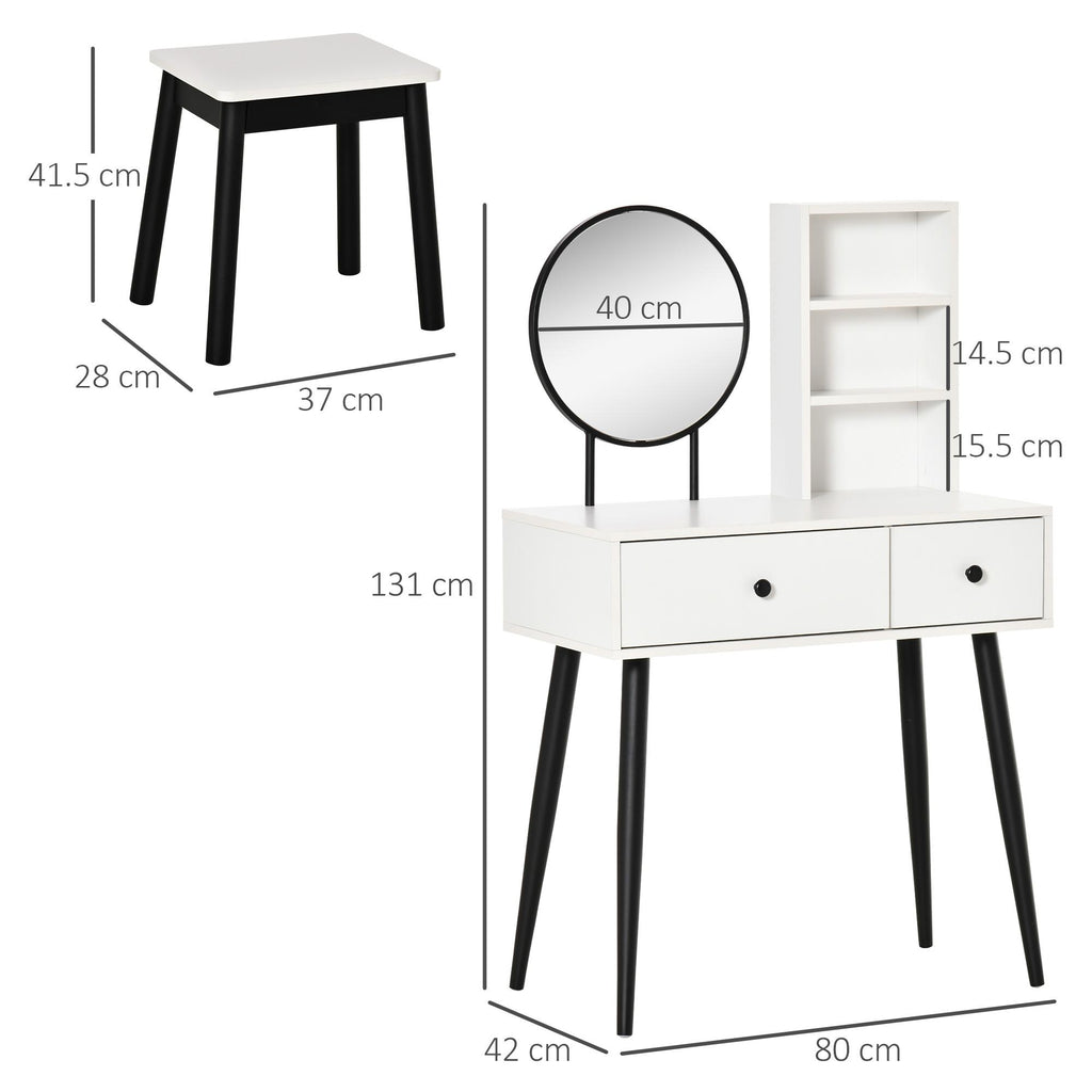 Il set tavolo per trucco con sgabello abbinato è la scelta perfetta per ogni beauty addicted! Il suo design moderno lo rende perfetto da abbinare a diversi stili di arredamento e offre tanto spazio per tenere in ordine trucchi e accessori di bellezza. La struttura della toeletta è solida e durevole nel tempo. Con lo specchio integrato e lo sgabello potrai truccarti e seguire i tuoi rituali di bellezza in tutta comodità. Non lasciartelo scappare!