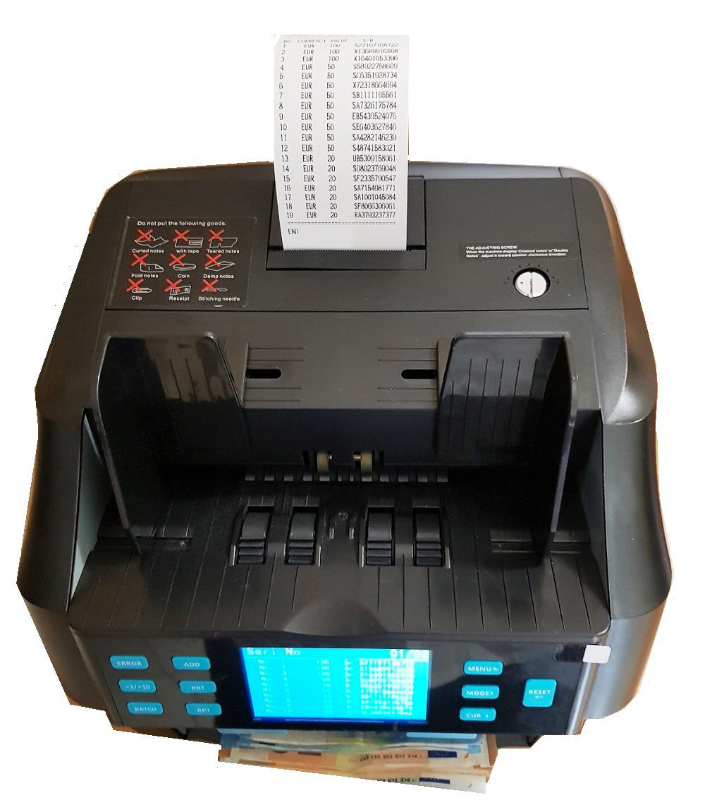 - Oltre al valore totale ed ai parziali, effettua la lettura del numero seriale delle banconote e del rispettivo valore