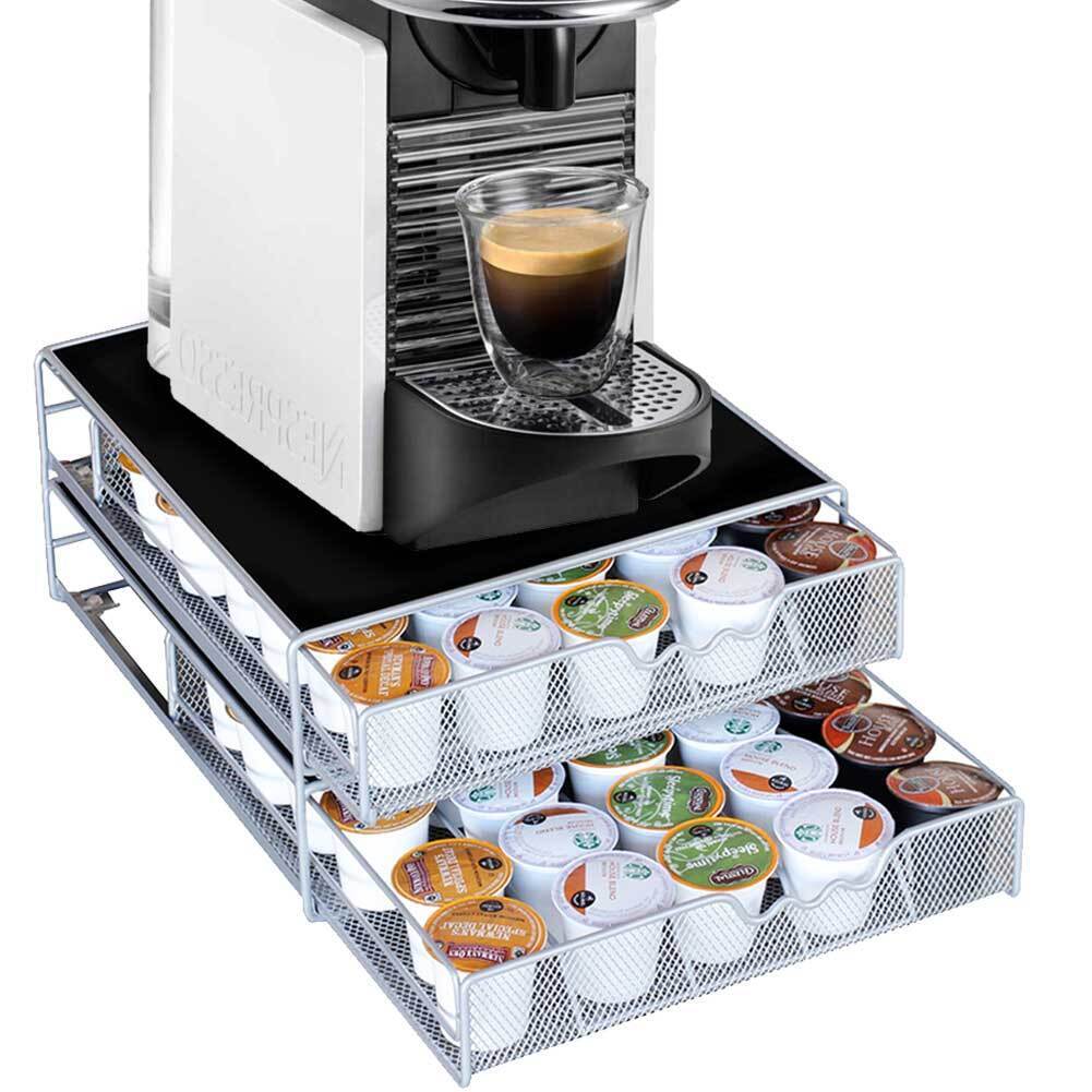 Tutto al suo posto! Basta scavare tra i cassetti della cucina per trovare capsule o cialde nascoste o dimenticate. Da oggi puoi recuperare spazio e mantenere tutto in ordine con il Contenitore Estraibile Porta Capsule e Ciade a 2 cassetti.