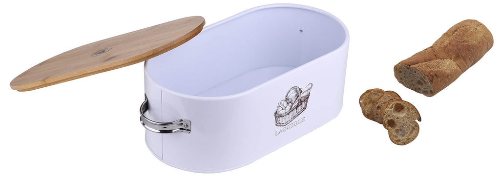 Contenitore Porta Pane in Acciaio Zincato e Coperchio in Bambù