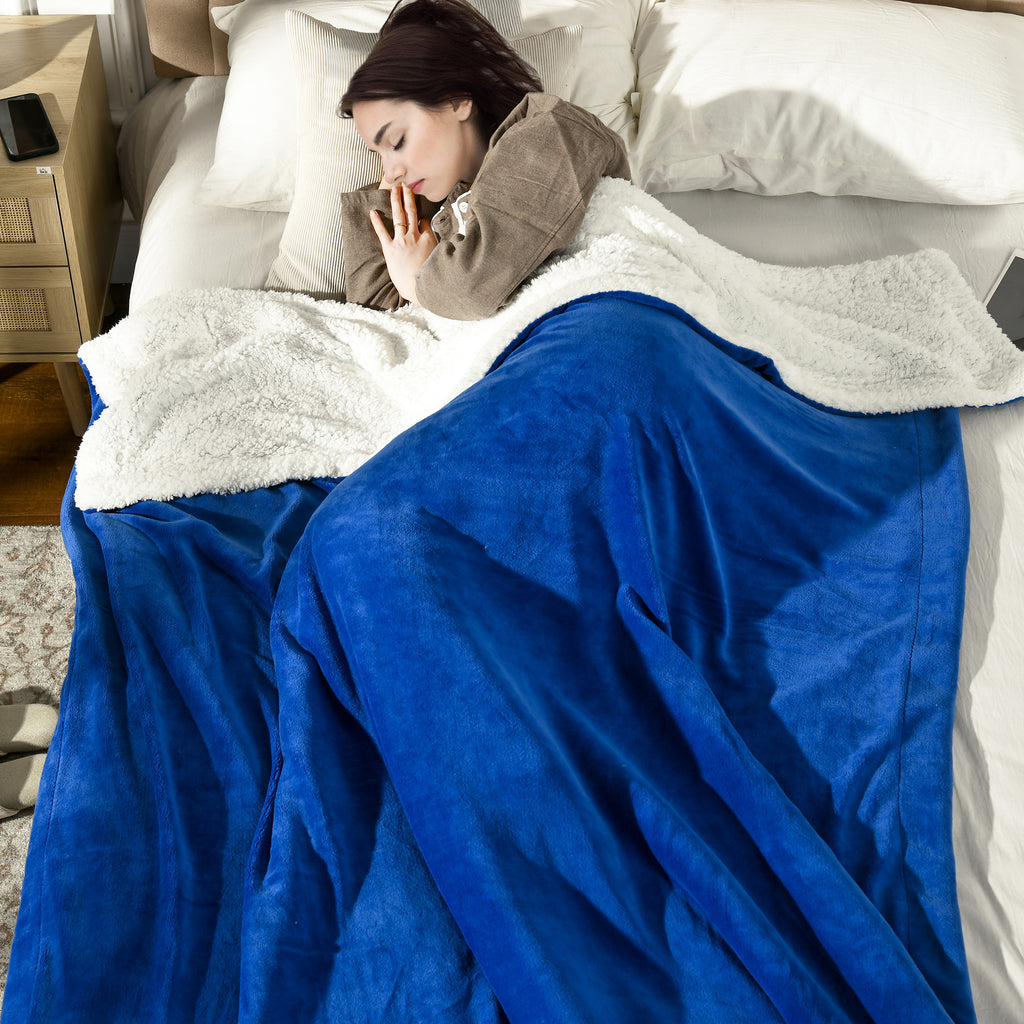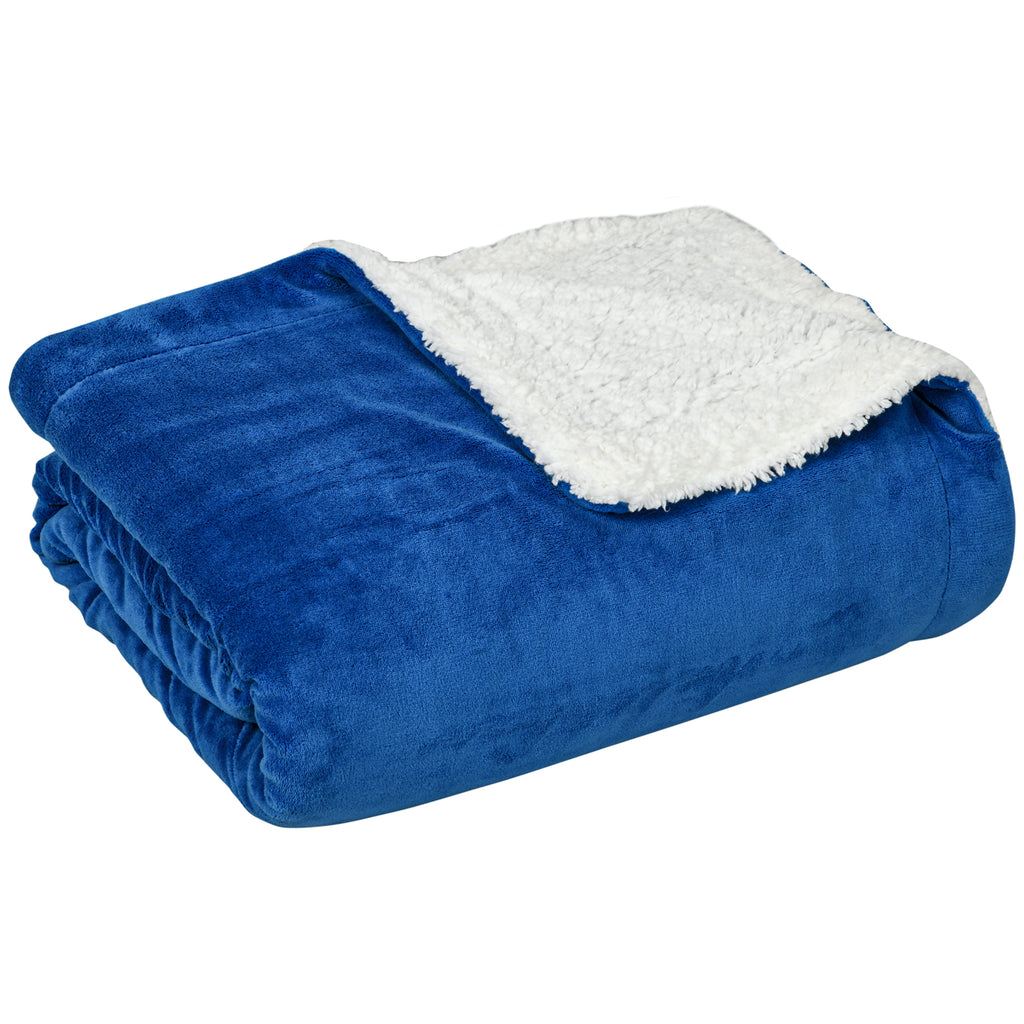 Coperta Plaid Dubleface 203x152x0,5 cm in Flanella 220 GSM e Sherpa 260 GSM Blu Scuro