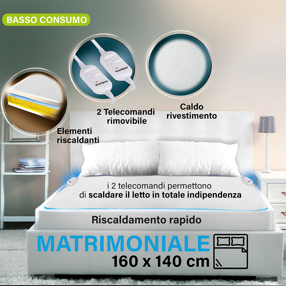 Coperta Termica Elettrica Matrimoniale 120W Kooper Pisola Bianca