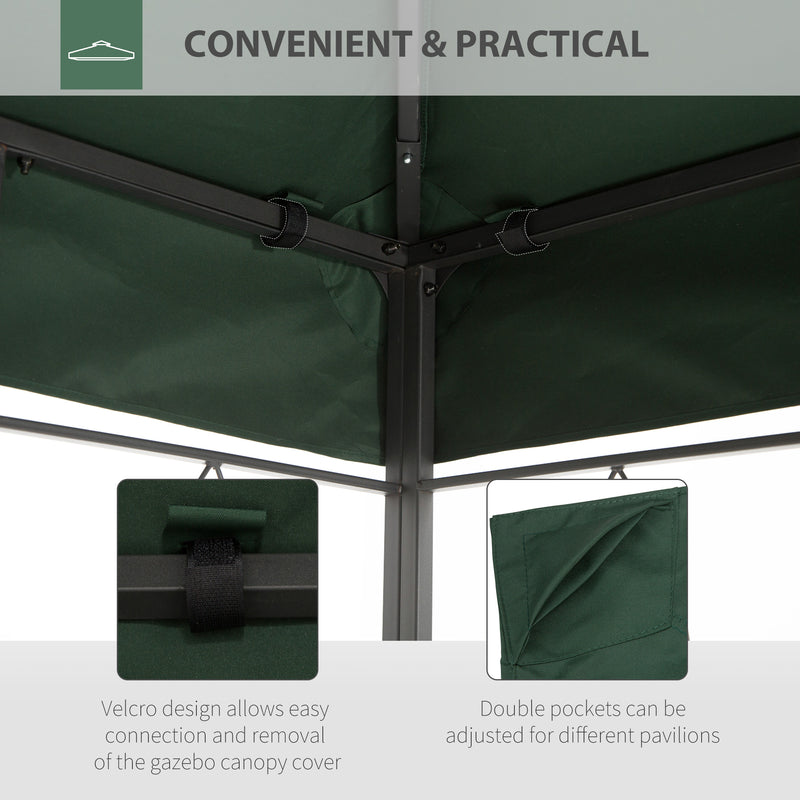 - TETTUCCIO A 2 LIVELLI: Il design a 2 livelli del tetto del gazebo di ricambio consente all'aria di entrare e uscire, contribuendo così a mantenere la giusta freschezza all'interno. Sono inoltre presenti 10 fori per il drenaggio dell'acqua
