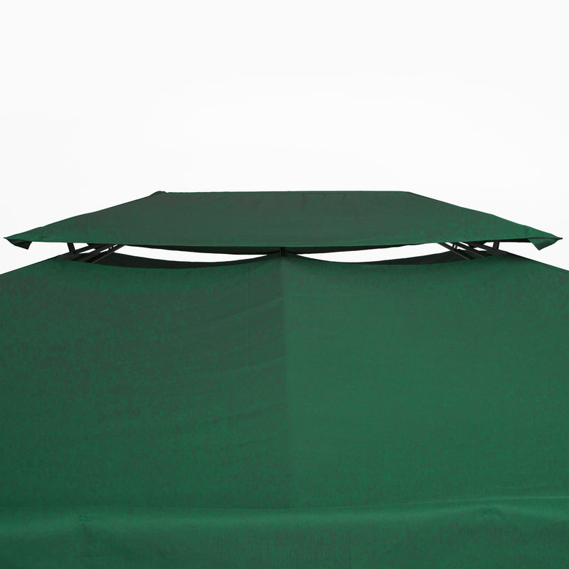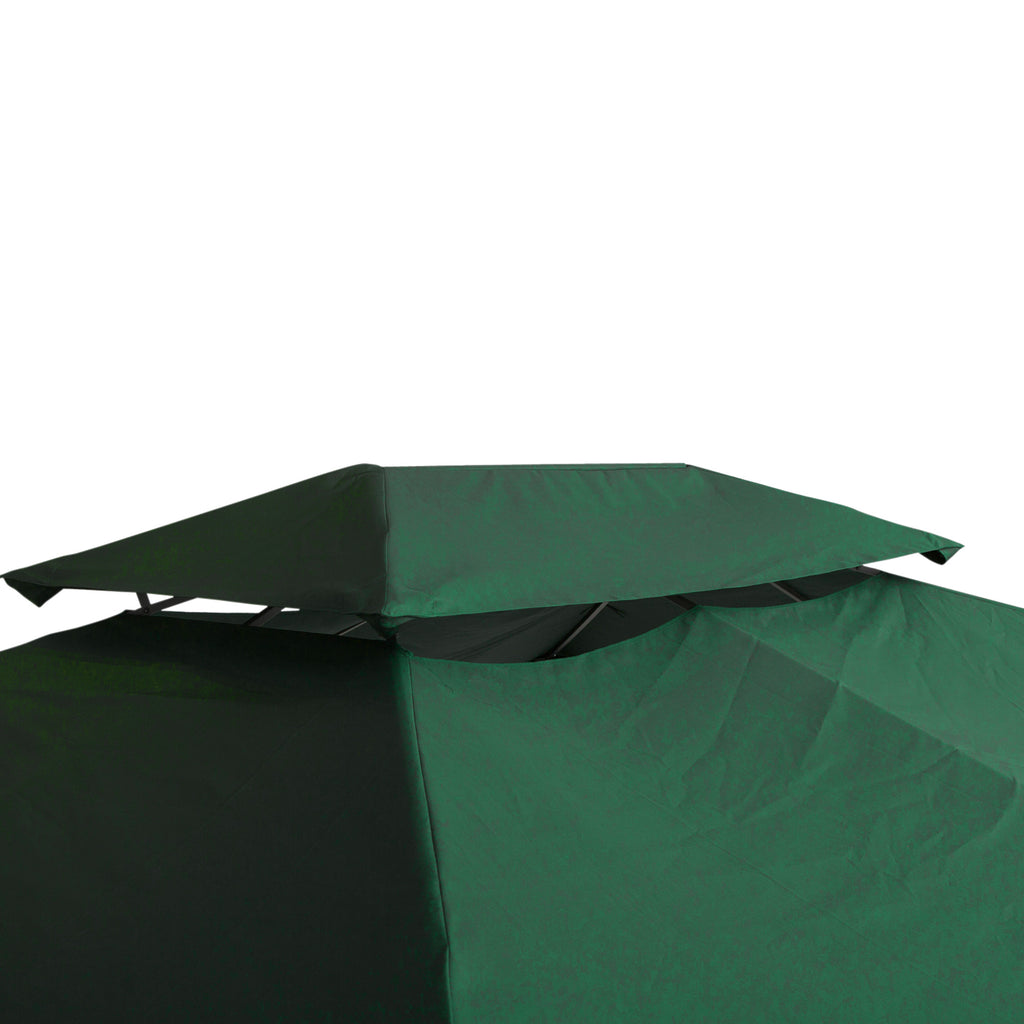 Copertura per Gazebo a 2 Livelli con Cinghie e 10 Fori di Drenaggio 4x3m in Poliestere Verde