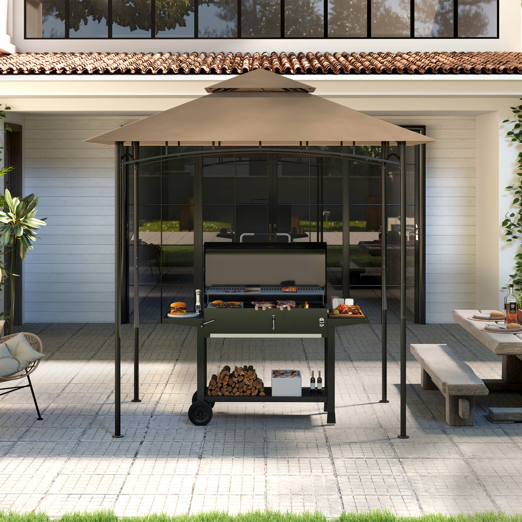 • DOPPIA PENDENZA: Il design a 2 livelli della tettoia per barbecue favorisce la ventilazione, abbassa la temperatura interna, migliora la resistenza al vento e previene l'accumulo di acqua