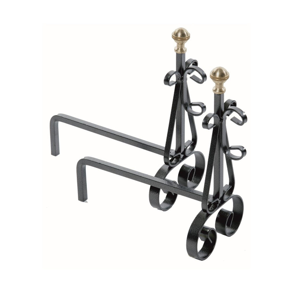 Coppia di Alari per Camino Pomolo in Ottone in Ferro Verniciato Grigio Martellato