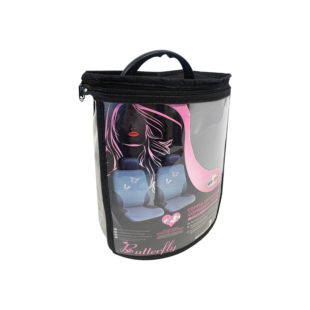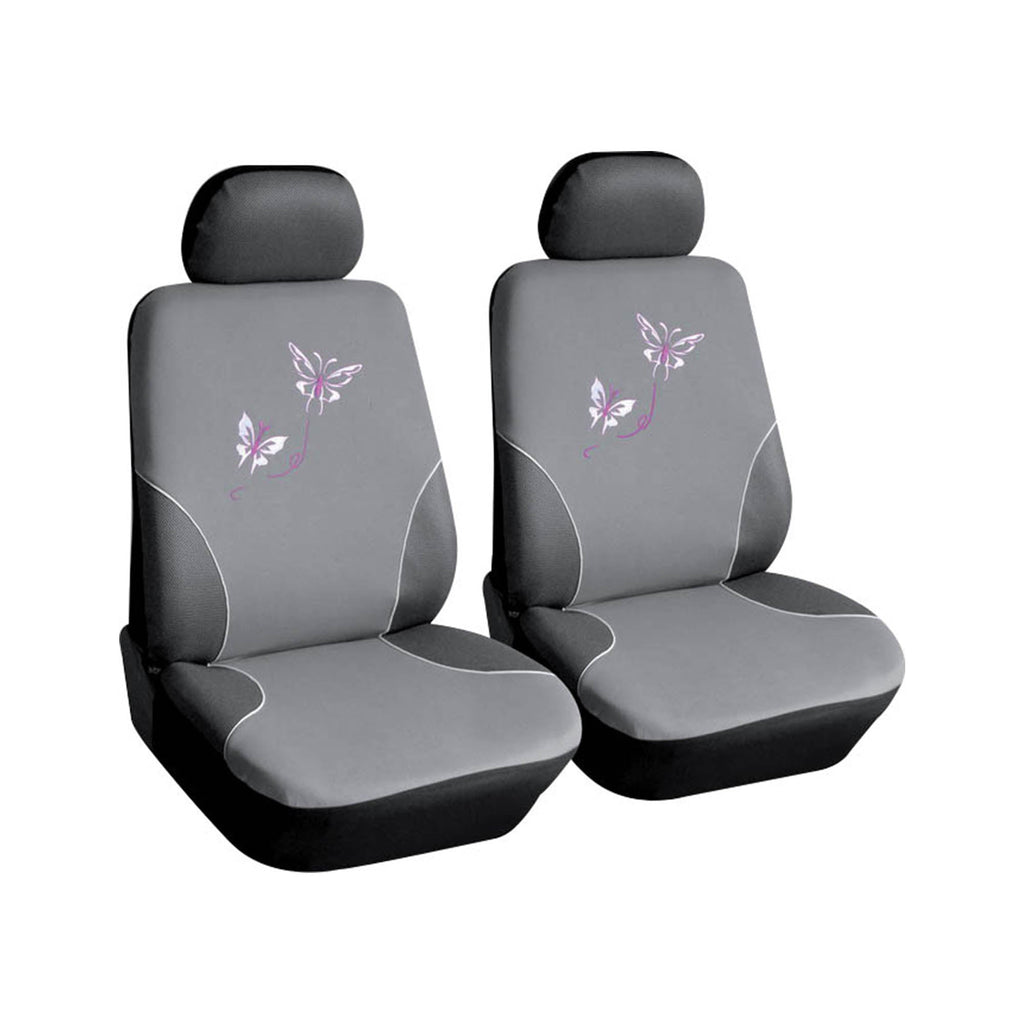 Coppia di Coprisedili Anteriori Universali in Poliestere e Spugna Butterfly Grigi