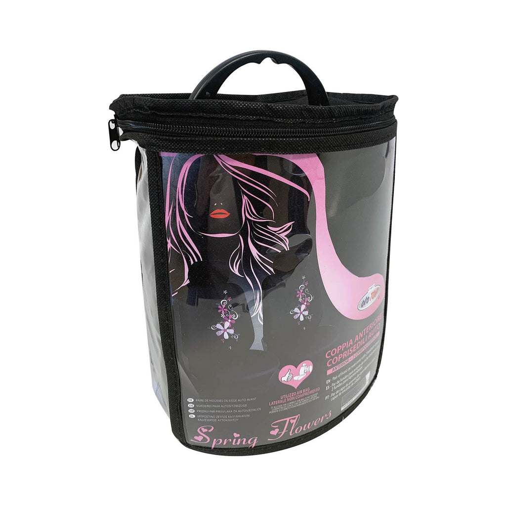 Coppia di Coprisedili Anteriori Universali in Poliestere e Spugna Spring Flowers Grigi