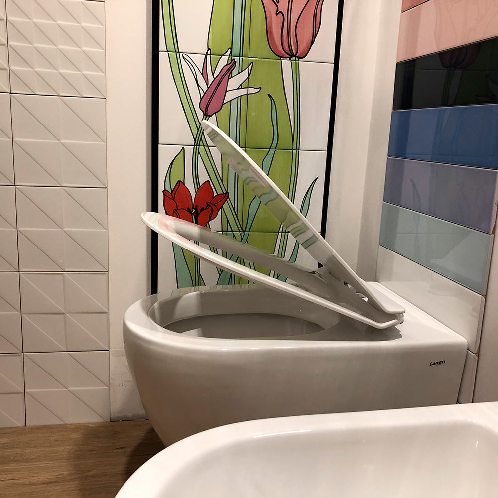 La gamma è completa di wc, bidet e coprivaso soft close con chiusura rallentata, cernire in ottone. Fissaggi inclusi.