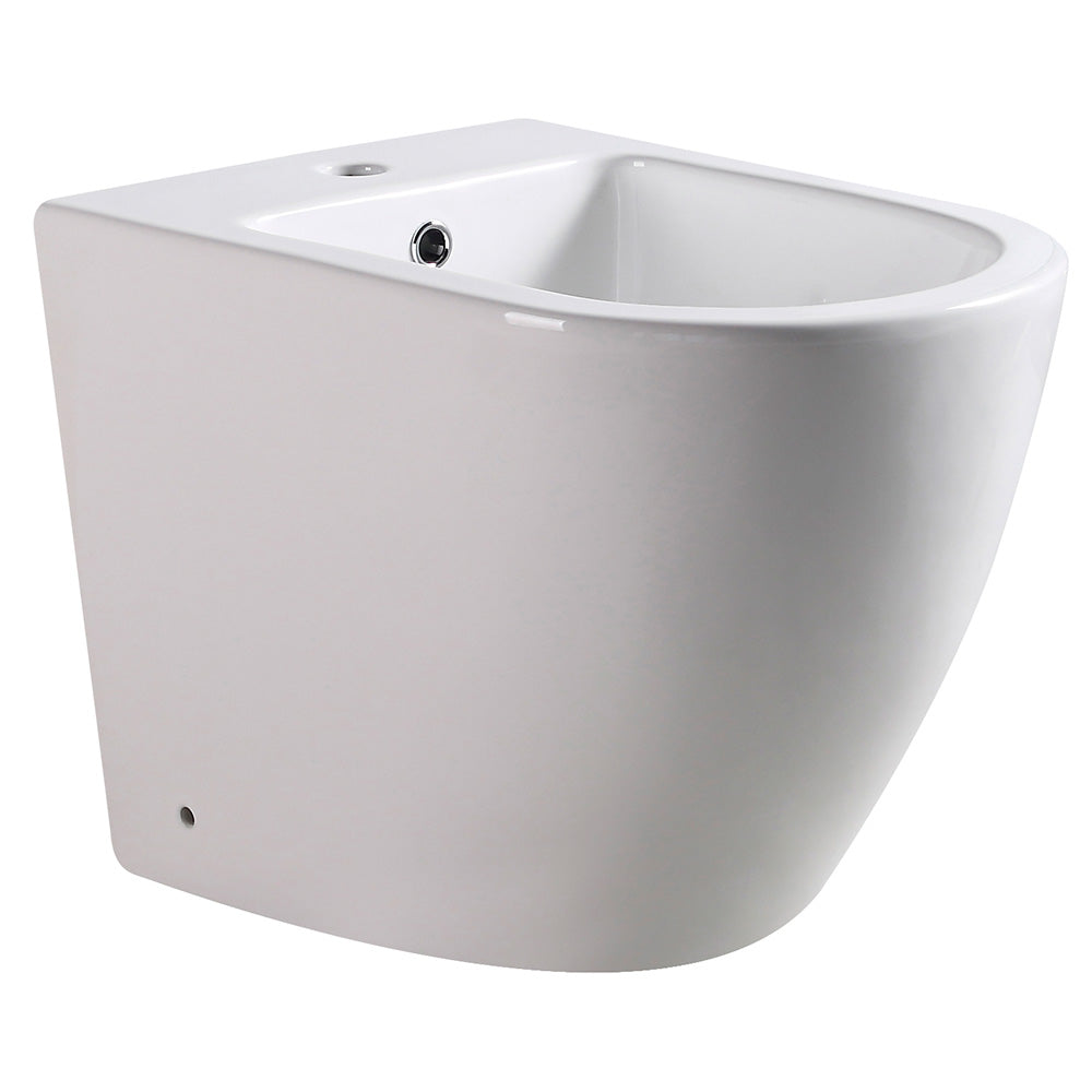 Coppia di Sanitari WC e Bidet a Terra Filo Muro in Ceramica 37,8x56,5x41cm