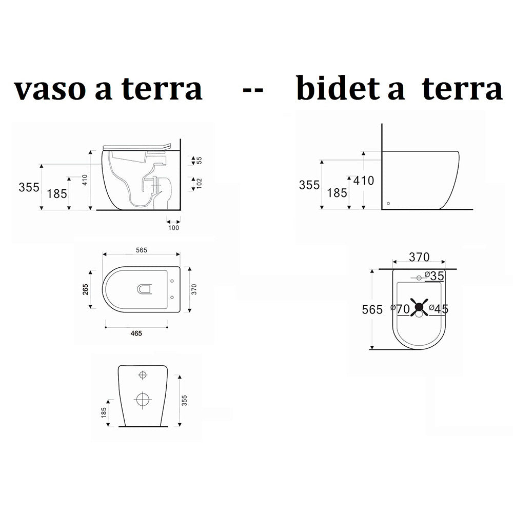Il Set comprende: vaso, bidet, coprivaso, curva tecnica s/terra o s/parete, fissaggi terra
