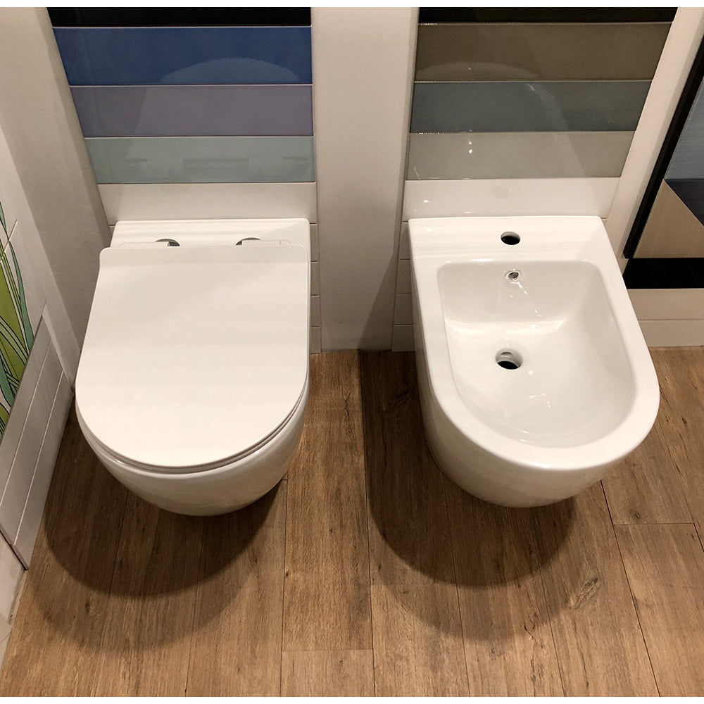 Bellissima coppia di Sanitari a terra in versione tonda! Bella, elegante e moderna rappresenta il fiore all'occhiello della nostra gamma di sanitari.