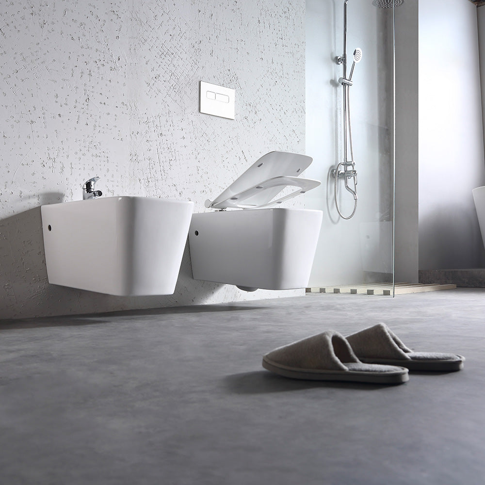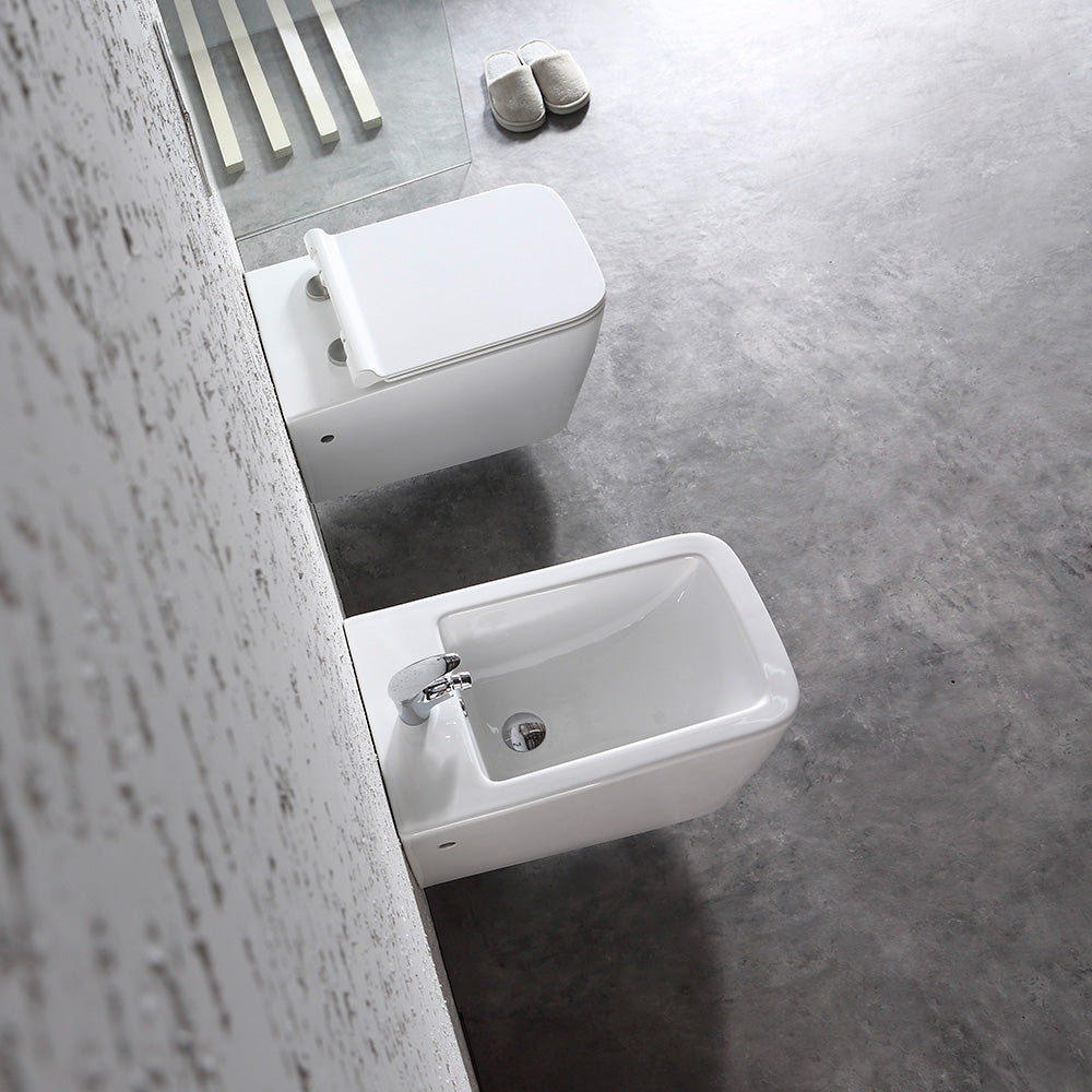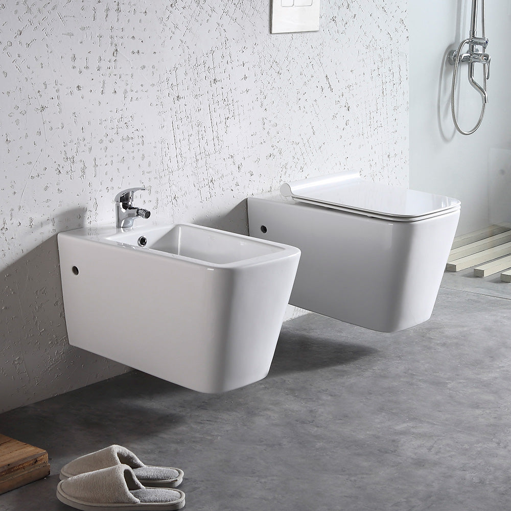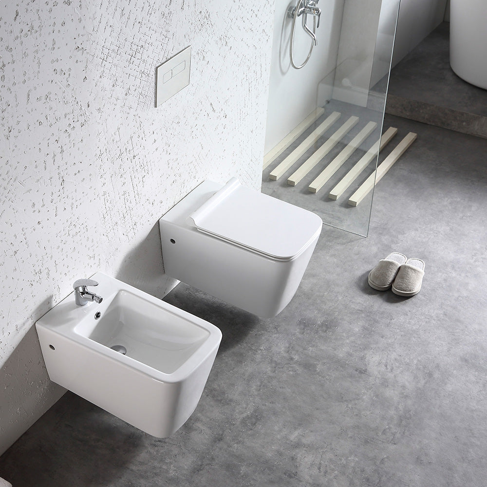 Coppia di Sanitari WC e Bidet Sospesi Filo Muro in Ceramica 36,5x58x33cm
