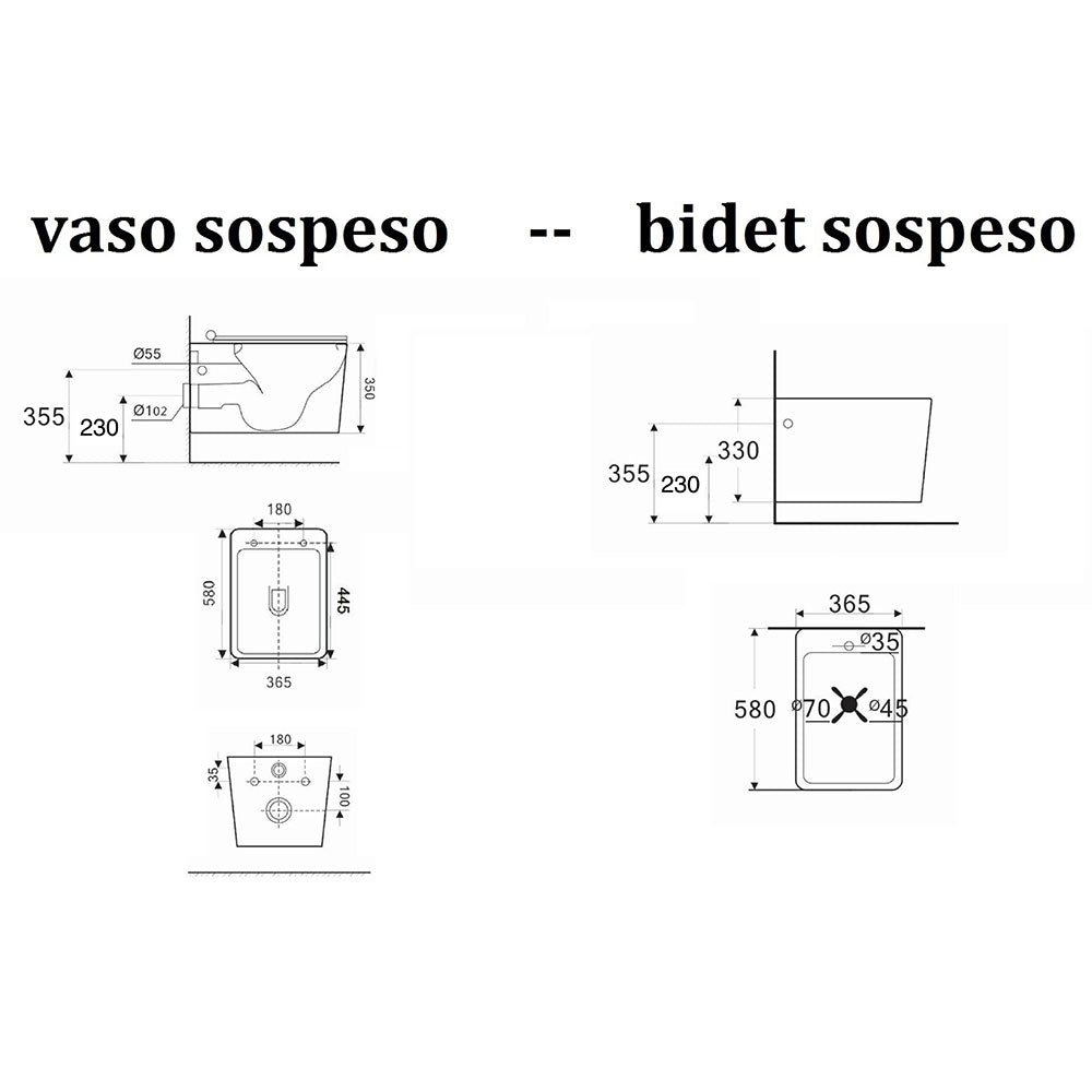 Il Set comprende: vaso sospeso, bidet sospeso, coprivaso, fissaggi per sospesi