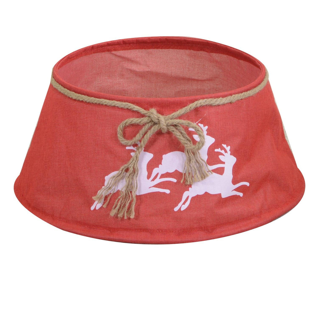 Copri base albero tessuto pieghevole renne rosso tondo cm Ø56xh25