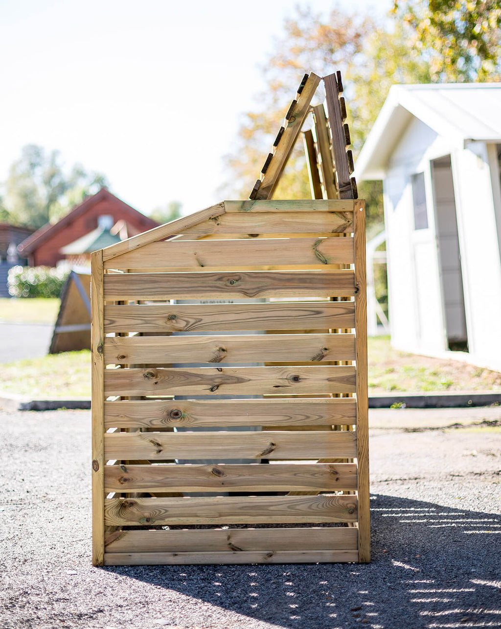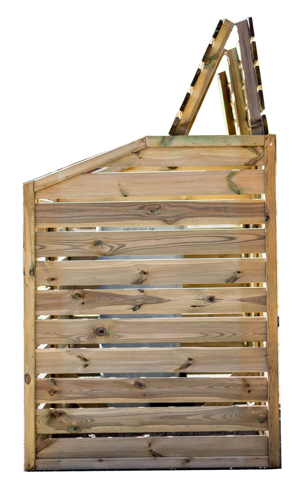 Ideale per nascondere alla vista i bidoni della raccolta differenziata; può contenere n°2 bidoni. Dotato di portelli di apertura e coperchi, per facilitare la movimentazione