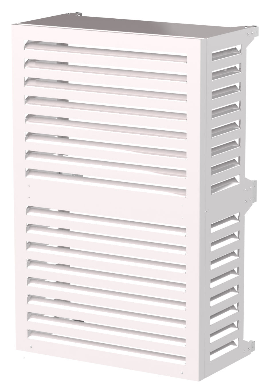 Big Blade è la cover per pompe di calore di grandi dimensioni dalle forme architettoniche rigorose ed eleganti. Protegge l'unità esterna da pioggia e grandine, riduce il rumore, valorizza la facciata.