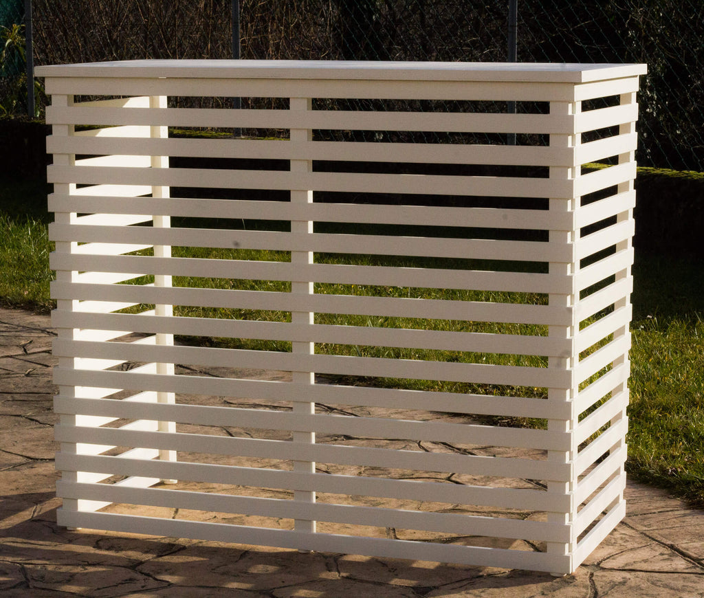 Pratico e funzionale Protezione per Unità Esterna da terrazzo e/o giardino in legno, verniciati con prodotti rispettosi per l'ambiente e di facile montaggio.