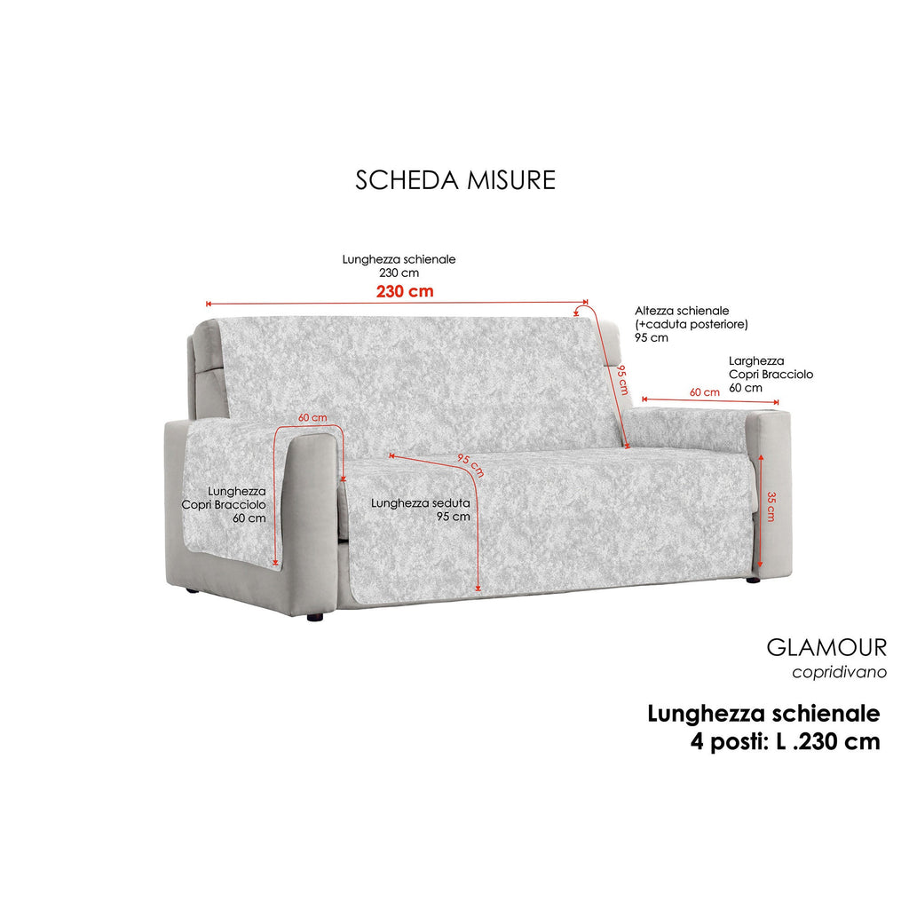 Copridivano dotato di parte inferiore in gomma antiscivolo, in modo da fare aderire perfettamente larticolo al divano. Articolo resistente, adattabile a tutte le tipologie di divano specialmente a quelli in pelle, dove i normali copridivani tendono a scivolare. Articolo Made in Italy. Articolo prodotto artigianalmente, ogni capo potrebbe presentare una leggera differenza di colore, data dallintreccio manifatturiero dei filati.