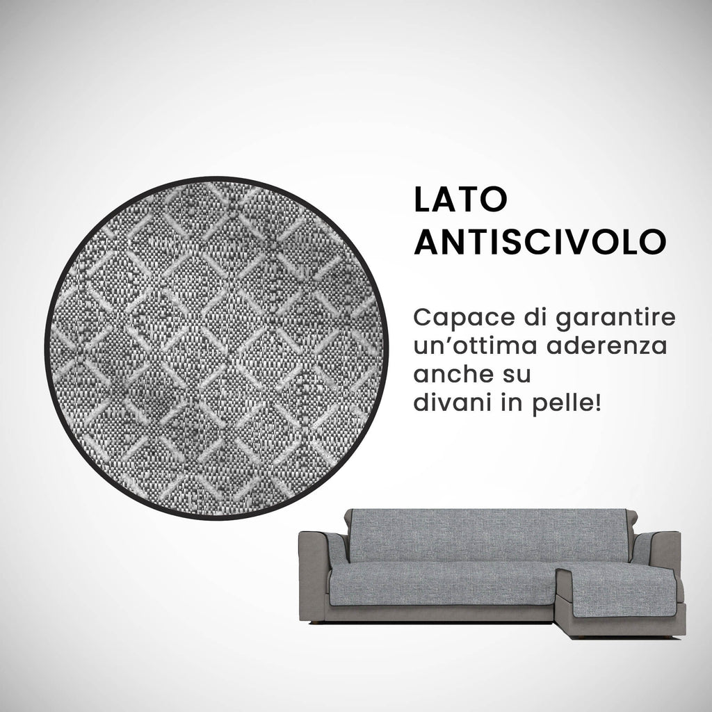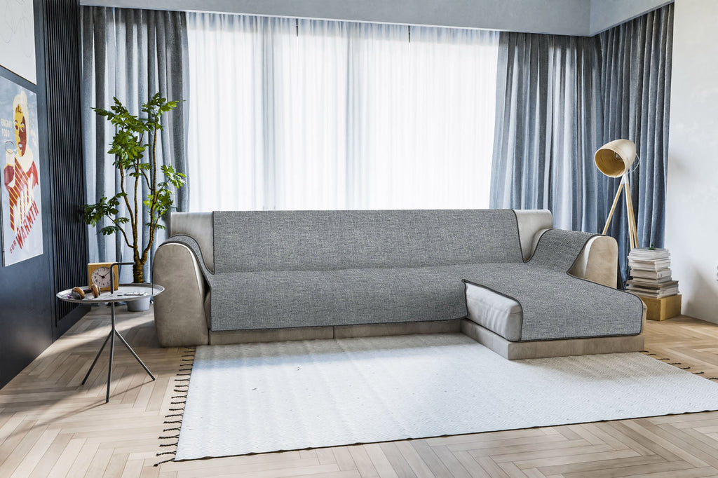 Copridivano con Penisola Destra in Poliestere e Cotone Grigio Scuro Varie Misure