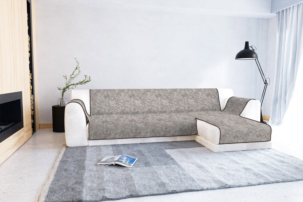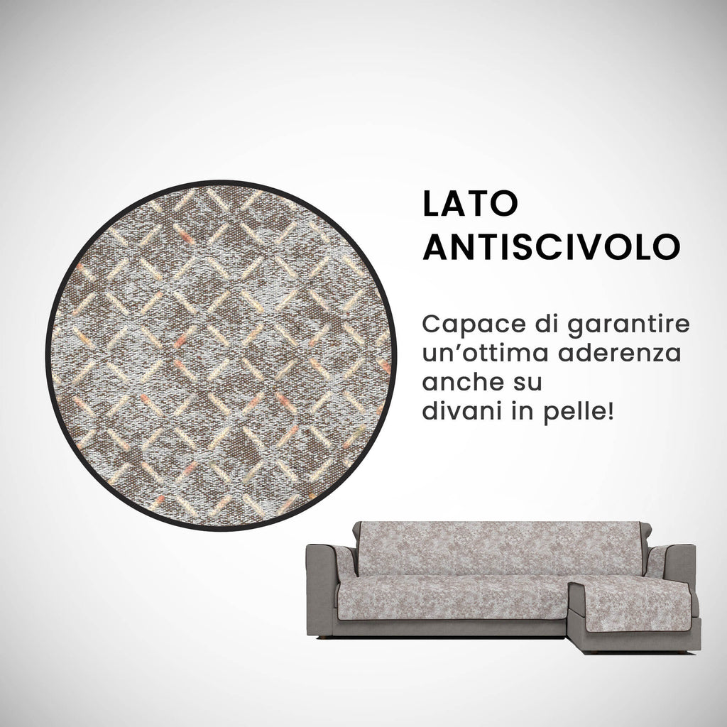 Copridivano con Penisola Destra in Poliestere e Cotone Marrone Varie Misure