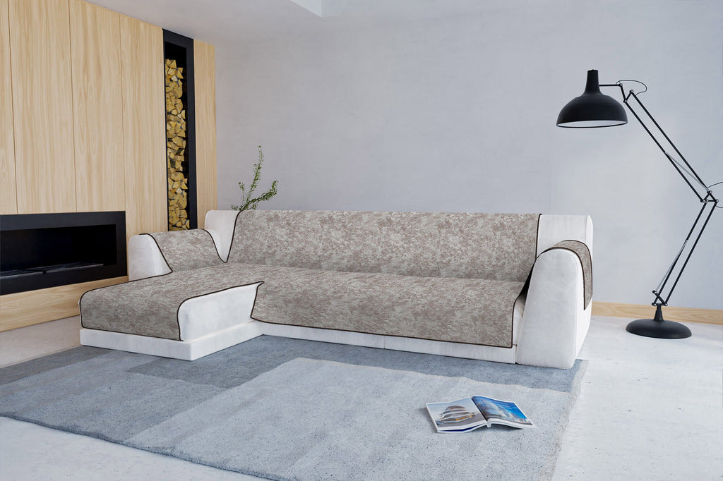 Copridivano con Penisola Sinistra in Poliestere e Cotone Marrone Varie Misure